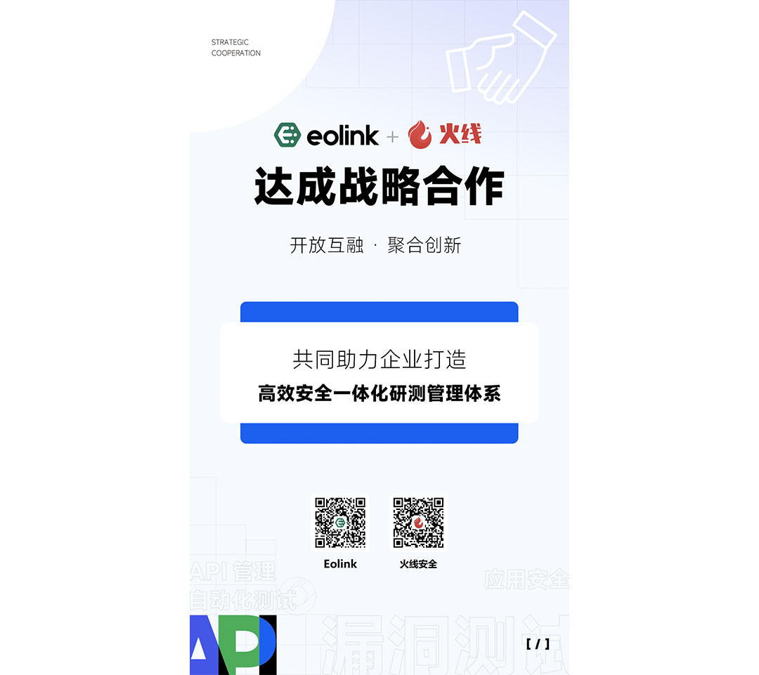 这次合作充分将展现了 Eolink 和火线安全在各自领域的优势互补,致力于推进 API 管理与应用安全领域的发展,携手共赢,共同推动数字化时代向着繁荣与安全的方向发展。
